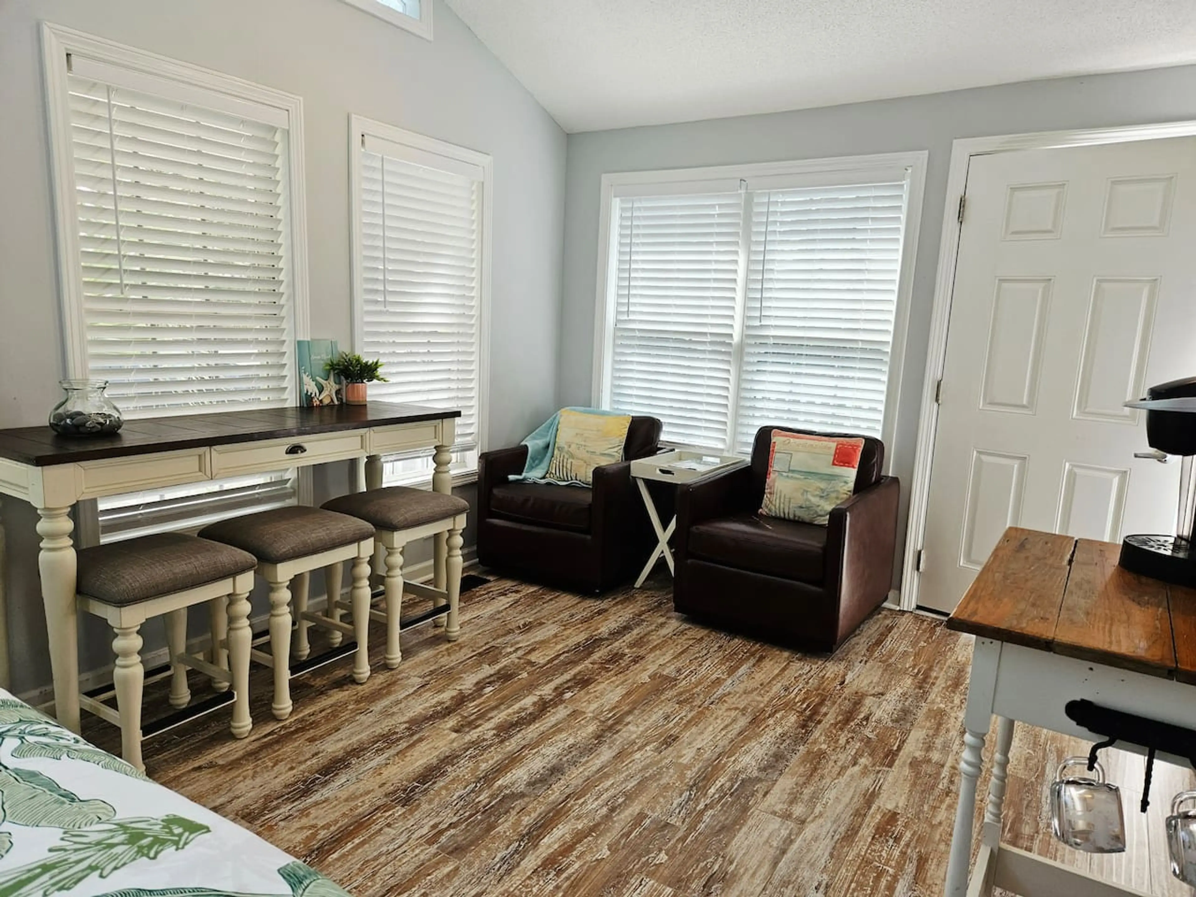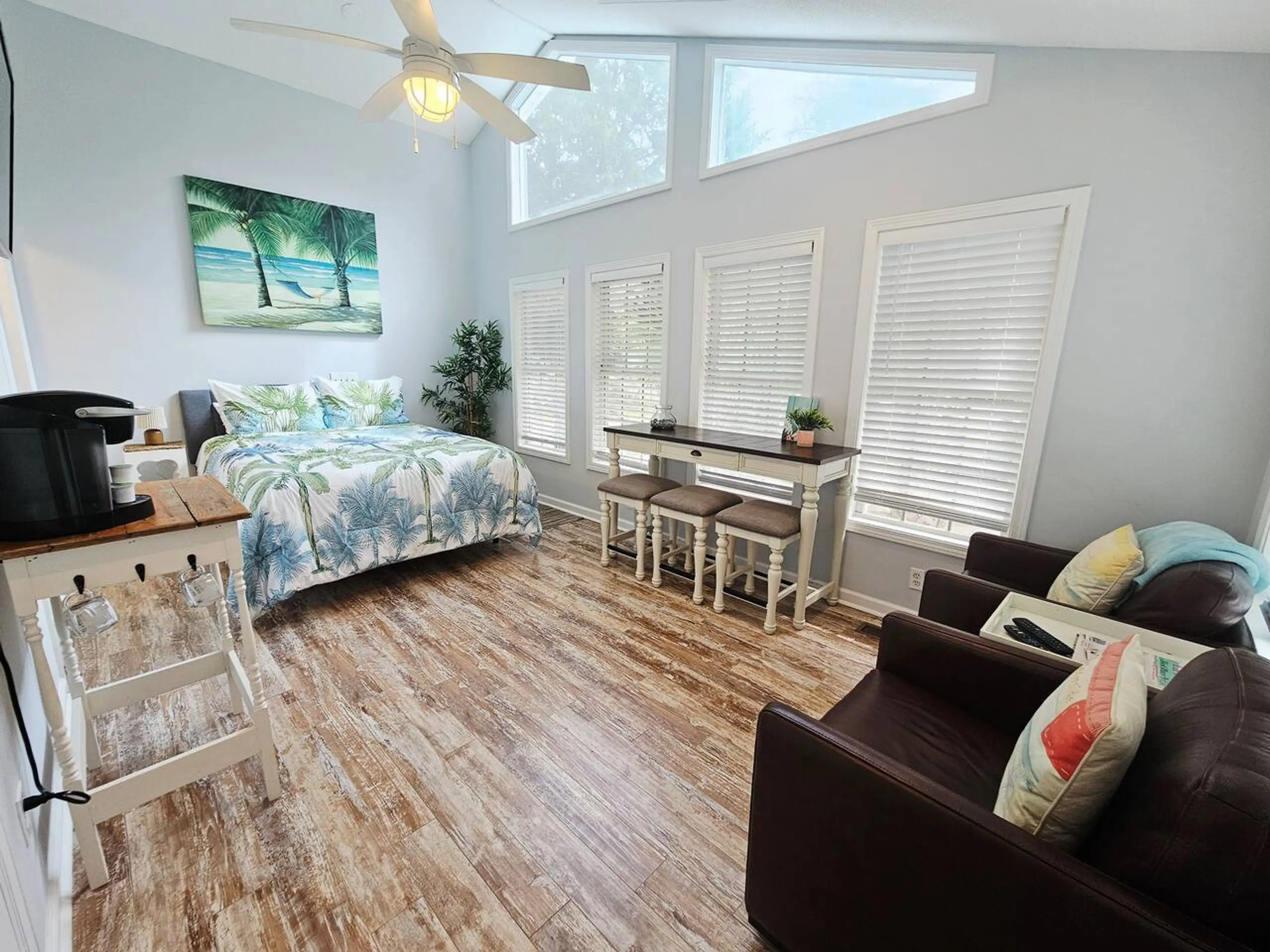Welcome to Drift Away, a bright and breezy unit that captures the easy rhythm of coastal living. Soft ocean tones and palm-inspired accents create a serene space, perfect for couples or solo travelers looking to relax. With a cozy sleeping area, a well-stocked kitchenette, and a peaceful atmosphere,...